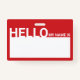 Moderno en blanco "hola, mi nombre es" insignia roja