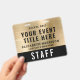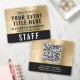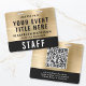 Create a polished, professional presentation with these elegant custom event access pass badges, designed to combine clear identification, branding, and modern QR functionality. Featuring a bold, easy-to-read layout, this badge highlights your event title and staff or VIP name and their details for instant recognition. The premium black and brushed gold background adds an upscale touch -- perfect for conferences, corporate events, festivals, and productions. The back includes a large scannable QR code, making it ideal for check-ins, schedules, digital tickets, credentials, or secure access control.