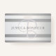 Tarjeta De Identificación Elegante Monograma Faux Plata Gradiente Rayas Gris