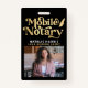 Elegante y de moda insignia de negocios para agente de firma de préstamos notarios móviles que presenta un guión de caligrafía manuscrita en oro de Relieve metalizado falso ''notary''' en un fondo negro. Personaliza tus datos.