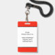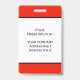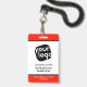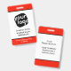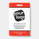 Esta elegante insignia es perfecta para cualquier empresa que desee darle a su personal un aspecto individualizado con textos y colores personalizados. El diseño tiene un fondo rojo, negro y blanco que también se puede personalizar fácilmente.