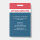Un distintivo profesional de personal para su organización empresarial. Diseño moderno rojo, blanco y azul. Agregar foto, nombre, número de identificación y otra información importante para los empleados. También se puede agregar información al reverso. Tarjeta de identificación oficial para ayudar a su personal a destacarse y ser identificado donde sea necesario.