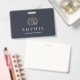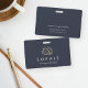 Perfecto para su spa, salud y bienestar holísticos, estudio de yoga o negocio de masajes terapéuticos, el diseño presenta un rico fondo azul marino adornado con un falso logo de flor de loto de Relieve metalizado dorado. Personalice el nombre y el cargo de su empleado o su función en la escritura blanca clásica. La silueta de una persona meditadora se ha incorporado sutilmente a este diseño moderno y elegante, perfecto para la marca de su negocio de bienestar. Agregue su dirección comercial o información adicional al reverso.