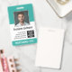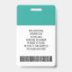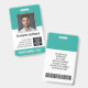 Blanco y verde azulado: un diseño empresarial básico que destaca los logotipos de su oficina y el nombre del empleado. Este diseño de oficina tradicional también incluye un número de identificación de la insignia, fecha de vencimiento y enfermera o título.