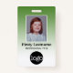 Verde: diseño básico de negocios personalizado que destaca los logotipos de su oficina y el nombre del empleado. Puede agregar un código de barra de exploración en la parte frontal y posterior.