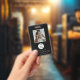 Elegante distintivo negro empleado de fotografía.