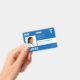 Moderno hospital de tipografía o empleado del centro médico RN enfermera personalizado foto tarjeta de identificación personalizada azul horizontal con tipografía audaz, código de barras y su logotipo. Plantilla de ++++++++ fácil de personalizar con la foto y los detalles en ambos lados.