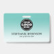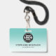 Una moderna placa verde azulada para el nombre de los empleados y el logotipo de su empresa. Opción para incluir información adicional de la empresa y un código de barras de exploración en la parte posterior, si es necesario. Este diseño sería perfecto para cualquier empresa o negocio y el fondo se puede cambiar a cualquier color.