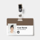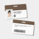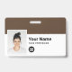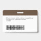 Personalice fácilmente este distintivo de nombre de empleado Personalizado con foto, código de barras de exploración y logotipo de negocios, con clip metalizado incluido. Un sencillo diseño de negocio alineado a la izquierda en colores marrones y blancos profundos, personalizable completo en tamaño frontal y trasero, sans-serif fuentes básicas y modernas y un aspecto profesional y claro. Disponible con o sin patio, clip metalizado o retráctil. Sin orden mínima.