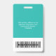 Personalice fácilmente este distintivo de nombre de empleado Personalizado con foto, código de barras de exploración y logotipo de gran empresa. Un sencillo diseño de negocios con colores azul turquesa y blanco totalmente personalizable en tamaño delantero y trasero, fuentes sans-serif básicas y modernas y un aspecto profesional y claro. Disponible con patio, clip metalizado o retráctil. Sin orden mínima.