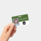 Un diseño empresarial básico que destaca los logotipos de su oficina y el nombre del empleado. Puede agregar un código de barra de exploración en la parte frontal y posterior. También puede cambiar el color del fondo.