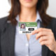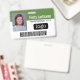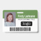 Un diseño empresarial básico que destaca los logotipos de su oficina y el nombre del empleado. Puede agregar un código de barra de exploración en la parte frontal y posterior.