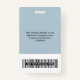 Personalice fácilmente este distintivo de nombre de empleado Personalizado con foto, código de barras de exploración y logotipo de gran empresa. Un sencillo diseño de negocios con colores polvorientos azul claro y blanco personalizable completamente en tamaño delantero y trasero, sans-serif fuentes básicas y modernas y un aspecto profesional y claro. Disponible con patio, clip metalizado o retráctil. Sin orden mínima.