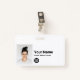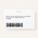 Personalice fácilmente este distintivo de nombre de empleado Personalizado con foto, código de barras de exploración y logotipo de negocios, con clip metalizado incluido. Un sencillo diseño de negocio alineado a la izquierda en color blanco y negro personalizable completamente en tamaño frontal y posterior, sans-serif fuentes básicas y modernas y un aspecto profesional y claro. Disponible con o sin patio, clip metalizado o retráctil. Sin orden mínima.