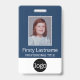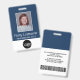 Azul marino: un diseño empresarial básico que destaca los logotipos de su oficina y el nombre del empleado. Puede agregar un código de barras en la parte delantera y trasera.