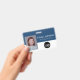Un diseño empresarial básico que destaca los logotipos de su oficina y el nombre del empleado. Puede agregar un código de barras de escaneo en la parte delantera y trasera. También puede cambiar el color del fondo.