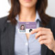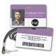 Un diseño empresarial básico que destaca los logotipos de su oficina y el nombre del empleado. Puede agregar un código de barras de escaneo en la parte delantera y trasera.