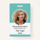 Personalizado Empleado, Foto, Código de barras, Logo, Marca de nombres Puede personalizar esta plantilla añadiendo su foto, nombre, profesión, logotipo de su empresa y código de barras. Diseño profesional simple en blanco y azul con marco de foto circular