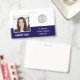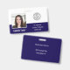 Personalice estas insignias horizontales con una foto y nombre de empleado, junto con un campo de plantilla para texto personalizado adicional para número de identificación de empleado, rol o título, ubicación u otros datos clave. Agregue su logotipo en la parte superior. Campo de texto personalizado adicional ubicado en la parte posterior para información de devolución u otros detalles.