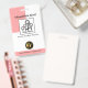 Una cubierta blanca se acentúa con un diseño de columna rosa. En la parte superior está tu prestigioso nombre, una plantilla de fotos para subir una foto (a 1,000 x 1,000 puntos) seguida del título del trabajo. Cerca de la base hay un logo dorado "figurina bailarina" que se puede usar junto a su nombre de negocio. Al dorso, el logo dorado está en la parte superior. Después de esto viene el comentario "Si se pierde, regresa". ; Puede cambiar el título para adaptarlo a sus necesidades. A esto le sigue su prestigioso nombre, los detalles de contacto y otra opción de subtítulo de eslogan. Un diseño de insignia para temas de salud.