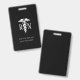 Permita que sus pacientes sepan quién está cuidándolos con esta Tarjeta de Identificación Personalizada de Enfermera Registrada Caduceo Médico. Tiene un diseño moderno con fondo negro personalizable en ambos lados. Un símbolo de caduceo blanco está en el centro con "RN" en letras blancas. Personalizado con su nombre y título laboral y lugar de trabajo. Puede personalizar el texto o eliminarlo haciendo clic en la opción de personalizar plantilla