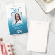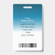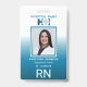 Sencilla, moderna y sofisticada combinación de colores ombre azul y blanco: identificación vertical para enfermera, con: foto personalizada, nombre de la enfermera, nombre del hospital, logotipo, título del trabajo, identificación, designación, código de barras y toda la demás información. Es fácil personalizar y personalizar todos los elementos gráficos y texto.