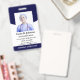 Eleva tu imagen profesional con nuestra Tarjeta de Identificación de Enfermera Registrada Profesional. Esta tarjeta muestra una plantilla personalizada para tu foto e información legible, sobre un fondo sofisticado de color azul marino, que simboliza confianza y fiabilidad. ¿Qué la distingue? La tarjeta integra un código de barras que enlaza con tu portafolio en línea o la página web del hospital, proporcionando una conexión fluida con tus logros y experiencias profesionales. Diseñada para enfermeras registradas experimentadas, esta tarjeta combina un diseño clásico con funcionalidad moderna, lo que te hace destacar como un profesional experimentado en el campo de la salud. Causa una impresión duradera con una tarjeta que refleja tu experiencia y compromiso con la excelencia. Por favor, haz clic en el botón de personalizar para personalizarla con tu texto y foto. También es ideal como regalo para enfermeras. Visita mi tienda "loveyouart" para otros diseños similares.