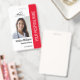 Personalice fácilmente esta identificación de foto de empleado médico profesional rojo con sus datos personalizados.