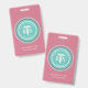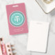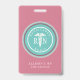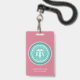 La tarjeta de identificación de Enfermera Registrada RN con nombre médico moderno rosa está personalizada con el nombre de la enfermera o puede ingresar texto personalizado. Un símbolo médico de caduceo elegante, "enfermera registrada" y "RN" están centrados en un borde circular. Su título laboral también está debajo del nombre. Fondo pastel rosa y azul turquesa personalizable.