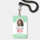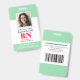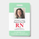 Foto moderna de RN Insignia de Enfermera registrada. Diseño con fondo verde y blanco médico, foto individual, nombre del hospital, profesión y nombre. Personalice su código de barras y detalles de contacto. Las tarjetas de identificación modernas facilitan la identificación de los empleados por los clientes y clientes. Para editar esta plantilla, haga clic en personalizar más adelante.