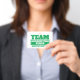Etiqueta de nombre personalizada para el equipo verde. Ideal para equipos de oficina, eventos familiares, juegos divertidos o para equipos deportivos. Personalice este diseño con el nombre de su equipo o familia y equipo o lema y nombre y su función en el verso. Otros colores disponibles. Ideal para la creación de equipos, eventos y regalos motivacionales para equipos. Diseñado por www.mylittleeden.com en zazzle