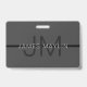Tarjeta De Identificación Estiloso nombre gris oscuro masculino y monograma