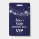 Un diseño elegante de estrellas brillantes en azul marino a medianoche, esta invitación de fiesta de cumpleaños y pase VIP se imprime en una insignia de plástico única - pedido con o sin patio. COINCIDIENDO con los artículos de nuestra tienda.