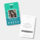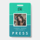 Un nombre moderno y minimalista y placa de foto ID de prensa, perfecto para cualquier profesión de noticia: periodistas, reporteros, fotógrafos, etc... Colores de fondo completamente de personalizable. También puede agregar fácilmente su código de barras o código QR para seguridad.