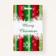 Feliz ilustracion navideño con decoración de copos de nieve sobre fondo coloreado a rayas