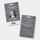Una insignia de personal moderna y profesional para su pequeña empresa o corporación. El fondo de textura de madera gris le da un aspecto único. Agregue la foto del personal y su propio logotipo. Aspecto sofisticado para branding de alta gama.