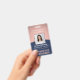 **Tenga en cuenta que el fondo está impreso para que parezca metálico, pero el producto no está hecho de metalizado y no es Relieve metalizado.** Representar su negocio con estilo suministrando al personal tarjetas de identificación modernas y profesionales. El logotipo, la foto, el código de barras y todos los textos de esta plantilla son sencillos para el personalizar. El diseño azul marino y rosa presenta un fondo dorado falso rosa con un arco curvo elegante, el logotipo de su empresa, una imagen cuadrada, el nombre y el título del empleado y el código de barras UPC en la parte posterior. Puede proporcionar organización y seguridad al personal de la empresa, al tiempo que presenta la marca corporativa con un elegante aspecto clásico. Tenga en cuenta que el oro rosa es color impreso, no Relieve metalizado metálico.