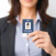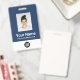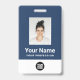 Personalice fácilmente esta identificación de empleado personalizada con foto, código de barras y logotipo comercial. Un diseño empresarial simple en colores azul marino y blanco totalmente personalizable en tamaños delanteros y traseros, fuentes básicas y modernas sans-serif y una apariencia profesional y clara. Disponible con cordón, clip metálico o retráctil. Sin pedido mínimo.