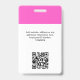Personalice fácilmente esta placa de identificación de empleado personalizada con foto, escanee el código QR (siempre legible, ¡funciona!) y logotipo comercial. Un diseño empresarial simple en colores rosa neón y blanco modernos totalmente personalizables en tamaños delanteros y traseros, fuentes básicas y modernas sans-serif y una apariencia profesional y clara. Disponible con cordón, clip de metal o retráctil. Sin pedido mínimo.