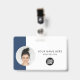 Personalice fácilmente esta Tarjeta de identificación de empleado minimalista horizontal personalizada con foto, escanee código QR o escanee código de barras y logotipo de la empresa. Un diseño empresarial simple con foto redonda, en colores azul marino y blanco totalmente personalizables en tamaños frontales y traseros, fuentes básicas y modernas sans-serif y un aspecto profesional y claro. Disponible con cordón, clip de metal o retráctil. Sin pedido mínimo. #f0f1f5