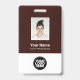 Personalice fácilmente esta placa de identificación de empleado personalizada con foto, escanee el código Qr (legible siempre, ¡funciona!) y logotipo comercial. Un diseño empresarial simple en colores marrón chocolate oscuro y blanco totalmente personalizable en tamaños delanteros y traseros, fuentes básicas y modernas sans-serif y una apariencia profesional y clara. Disponible con cordón, clip de metal o retráctil. Sin pedido mínimo.