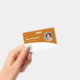 Personalice estas insignias horizontales de empleados naranjas con una foto de empleado, logotipo de la empresa, código de barras, ID de empleado y nombre.