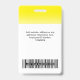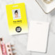 Personalice fácilmente esta placa de identificación de empleado personalizada con foto, código de barras de escaneo y logotipo comercial con un gradiente ombre blanco en el color de fondo. Un diseño de negocio de etiquetas de identificación de seguridad personalizadas simple en colores amarillo vibrante y blanco totalmente personalizables en tamaños delanteros y traseros, fuentes modernas y básicas sans-serif y una apariencia profesional y clara. Las placas de identificación están disponibles con cordón, clip de metal o retráctil. Sin pedido mínimo.
