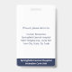 Mantenga seguro su hospital o consultorio médico con identificaciones personalizadas con la foto, nombre, título de trabajo y número de identificación de sus empleados, así como el nombre del negocio. También puede incluir un departamento si lo desea. Perfecto para una enfermera o otro personal. En la parte posterior puede agregar más información, como dónde devolver la identificación si se pierde. Personalícela con una foto y texto personalizado en la barra lateral. La foto cuadrada tiene un borde azul marino delgado sobre un fondo blanco. El texto es azul excepto el nombre del hospital en la parte inferior que es blanco sobre una banda azul oscuro.