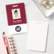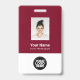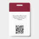 Personalice fácilmente este distintivo de nombre de empleado del Personalizado con foto, escanear código Qr (siempre legible, ¡funciona!) y el logotipo del negocio. Un sencillo diseño de negocios con colores rojo y blanco burdeos de cerezo oscuro de marsala personalizable por delante y por detrás tamaños, sans-serif de tipos básicos y modernos y un aspecto profesional y claro. Disponible con patio, clip metalizado o retráctil. Sin orden mínima.