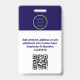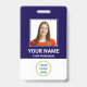 Personalice esta insignia de nombre de empleado del personalizado con una foto, escanee el código QR (siempre legible, ¡funciona!) y el logotipo comercial. Un sencillo diseño de negocio en colores azul marino y blanco, personalizable completo en tamaño frontal y posterior, sans-serif básico y moderno, y un aspecto profesional y claro. Disponible con un patio, clip metalizado o retráctil. No hay orden mínima.