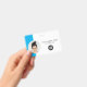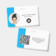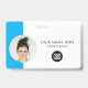 Personalice fácilmente este distintivo de nombre de empleado Minimalista de la empresa horizontal del Personalizado con foto, código Qr de escaneo o código de barras de escaneo y logotipo de la empresa. Un sencillo diseño de negocio con foto redonda, en colores azul claro y blanco personalizable completamente en tamaño frontal y trasero, fuentes sans-serif básicas y modernas y un aspecto profesional y claro. Disponible con patio, clip metalizado o retráctil. Sin orden mínima.
