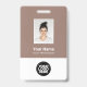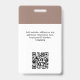 Personalice fácilmente este distintivo de nombre de empleado del Personalizado con foto, escanear código Qr (siempre legible, ¡funciona!) y el logotipo del negocio. Un sencillo diseño de negocios en modernos tonos marrón claro y blanco personalizable completamente en tamaños frontales y traseros, sans-serif, fuentes básicas y modernas y un aspecto profesional y claro. Disponible con patio, clip metalizado o retráctil. Sin orden mínima.