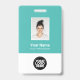 Personalice fácilmente este distintivo de nombre de empleado del Personalizado con foto, escanear código Qr (siempre legible, ¡funciona!) y el logotipo del negocio. Un sencillo diseño de negocio con colores azul claro y blanco personalizable completamente en tamaño frontal y trasero, sans-serif fuentes básicas y modernas y un aspecto profesional y claro. Disponible con patio, clip metalizado o retráctil. Sin orden mínima.