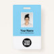 Personalice fácilmente este distintivo de nombre de empleado del Personalizado con foto, escanear código Qr (siempre legible, ¡funciona!) y el logotipo del negocio. Un sencillo diseño de negocio con colores bebe azul claro y blanco personalizable completamente en tamaño frontal y trasero, sans-serif fuentes básicas y modernas y un aspecto profesional y claro. Disponible con patio, clip metalizado o retráctil. Sin orden mínima.